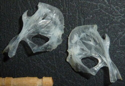 スズキ目ネズッポ亜目ネズッポ科ネズッポ属 学名:Repomucenus ornatipinnis (Regan) 英名:Sand dragonetいわゆる「めごち」の一種。左上の射出骨(境目がどこにあるか良く分からない)を含めて非常に独特な形。 拡大図。定番の天ぷらにして美味。八王子総…